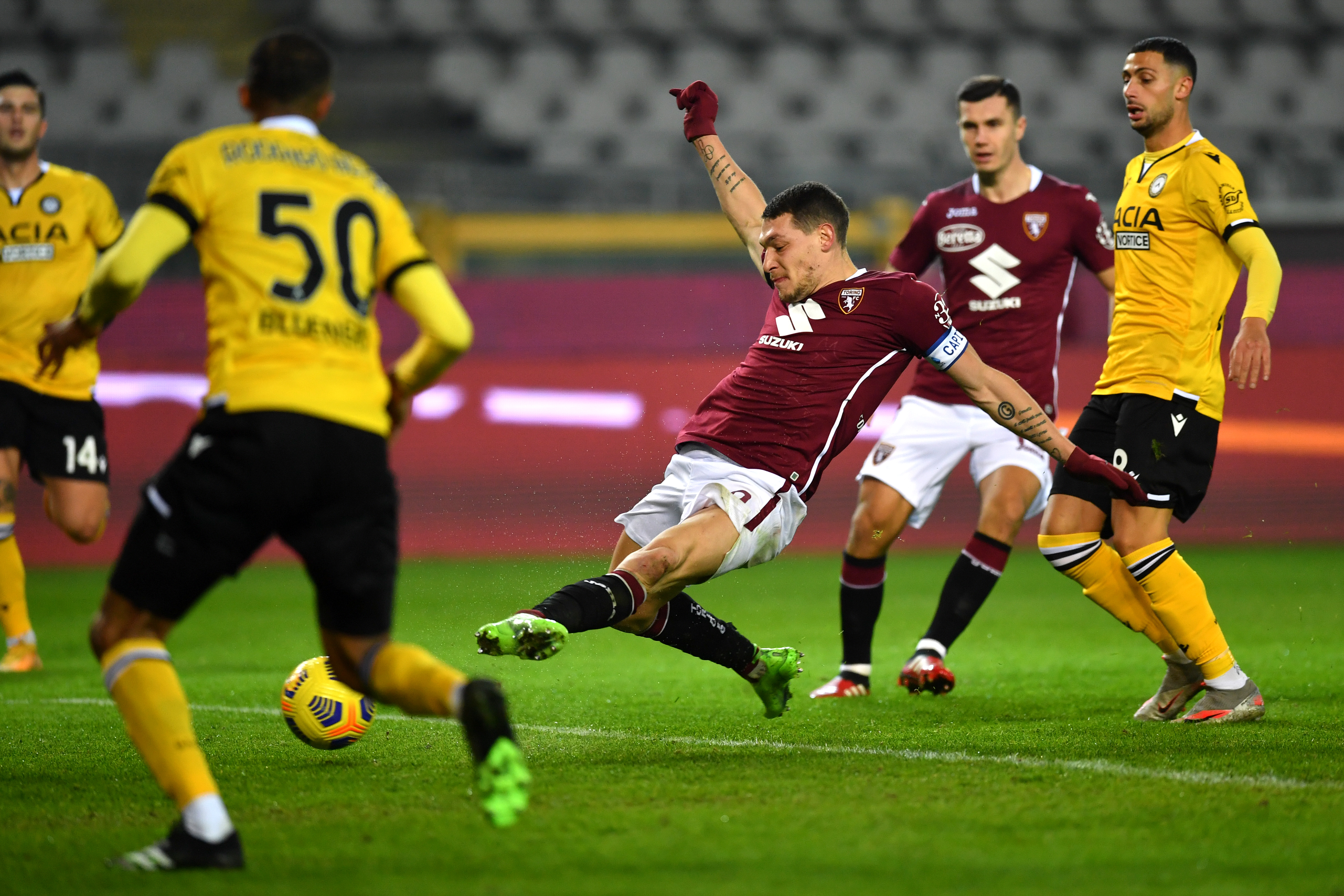 In fase di impostazione il gioco del Torino spesso iniziava con i tre difensori che si passavano la palla, a volte anche per un minuto intero, senza che i centrocampisti si smarcassero o che le punte venissero incontro, sino a quando uno dei tre difensori effettuava il lancio lungo con la difesa avversaria schierata e la palla veniva persa. In altre occasioni Belotti spesso arretrava a centrocampo, dove il Torino aveva già cinque giocatori, a ricevere palla; davanti rimaneva dunque l’altra punta da sola, al massimo si inseriva Linetty, ma comunque non c’erano quasi mai giocatori smarcati in avanti e il gioco non avanzava. Quelle poche volte che si riusciva a verticalizzare sui centrocampisti questi, anziché girarsi e impostare in avanti, scaricavano immediatamente ai difensori senza che fossero nemmeno pressati e la palla tornava quindi indietro. Persino le punte, a volte, nei pressi dell’area avversaria decidevano di scaricare non a un centrocampista, ma addirittura al difensore a centrocampo. Quando ci si trovava in fascia, invece, non c’era mai un taglio della punta o di un centrocampista verso l’esterno a spostare la linea difensiva; non ci si intendeva su come voler la palla, perché a volte il giocatore attaccava lo spazio e il compagno gli giocava addosso o, viceversa, chi aveva la palla lo mandava in velocità mentre il compagno si smarcava venendo incontro. Sui cross dalle fasce, le punte e i centrocampisti non occupavano l’area in modo adeguato per colpire di testa, e i cross non erano mai dal fondo ma sempre dalla trequarti con traiettorie basse e intercettate, o troppo lunghe sul secondo palo. Nella costruzione e finalizzazione della manovra, insomma, sono state decine e decine le situazioni in cui si è persa palla. Sottolineo anche l’enorme quantità di errori commessi sul piano tecnico: dal controllo errato alla mancanza di protezione della palla passando per il dosaggio di certi semplici passaggi. Eppure in altre situazioni gli stessi giocatori hanno eseguito gesti impeccabili. Un report indica per ogni giocatore quanti errori e quante decisioni giuste ha effettuato per ognuna delle voci sopra descritte (smarcamento incontro, in profondità, tagli, rimorchi, capacità di imbucare…). E anche da questo dato è facile capire che tipo di movimenti con e senza palla ogni giocatore effettua sistematicamente (situazione assimilata) e quali invece sbaglia sistematicamente (situazione non assimilata), al fine di svolgere allenamenti tattici mirati giocatore per giocatore. Suggerisco a chi vuole approfondire lo studio tattico della gara contro l’Udinese di andarsi a rivedere queste azioni: al minuto 9.40 un posizionamento non corretto in fase difensiva; al minuto 13.48 la difficoltà a impostare per mancanza di smarcamento continuo; al minuto 21,00 i continui scarichi anziché tener palla e giocare avanti; al minuto 23.37 l’azione del gol subito, al minuto 27.16 un’altra situazione difensiva errata, al minuto 43.47 la punta non viene incontro e l’esterno cerca un difficile dribbling perdendo palla, nei minuti 44.02 e 46.29 invece due buone azioni. Secondo tempo: al minuto 46.25 uno scarico incomprensibile, una buona azione al minuto 47.53, al minuto 53.23 una serie di mancate marcature porta al secondo gol subito, al minuto 56.20 fase difensiva, ai minuti 59.24 e 61.40 due buone azioni, ai minuti 65.45 e 66.47 i due gol del Torino frutto di aggressività! Ma al minuto 67.58 il terzo gol subito per i soliti errori in cui si perde l’avversario che si inserisce.