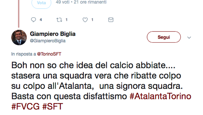 Il Torino pareggia a Bergamo con una prova gagliarda e attenta, senza particolari acuti. Non voleva perdere il Torino e ci è riuscito, ma preoccupa leggermente la mancanza di brillantezza offensiva e l'atteggiamento un po' troppo accorto anche quando si poteva provare a vincere. Anche i tifosi sono divisi sui social, tra quelli che reputano negativa la prestazione del Torino ed altri che invece elogiano la compattezza del collettivo che comunque, in un modo o nell'altro, ha risposto alla sconfitta con il Napoli. Ecco i migliori tweet del dopo partita di Bergamo.