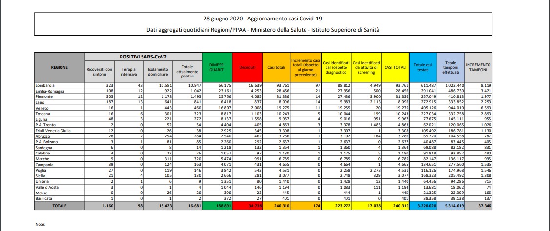 Come ogni giorno, la Protezione Civile ha diramato il bollettino che fotografa la situazione covid19 in Italia. Rispetto alle precedenti 24 ore sono 307 i guariti, mentre i deceduto sono stati 22. Il numero dei nuovi contagi, in Italia, sale di 174 unità. Per quanto riguarda il Piemonte, i nuovi casi registrati sono 14, a fronte di 1977 nuovi tamponi somministrati.