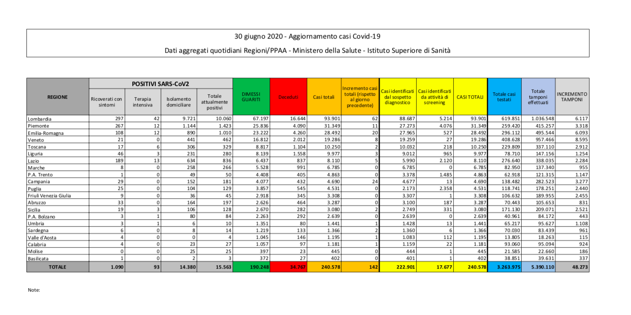 La battaglia contro il Covid-19 continua a migliorare in Italia. Anche oggi sono calati i casi di persone ancora infette dal virus, 1.052 le persone guarite. Purtroppo, nelle ultime 24 ore si registrano 23 persone morte. Invece i nuovi contagi rispetto a ieri sono 142. Calano anche le terapie intensive, meno 3 posti. I posti occupati in terapie intensiva continuano ad essere sotto quota 100 (93). In Piemonte si è registrato un incremento di 11 casi totali rispetto a ieri.