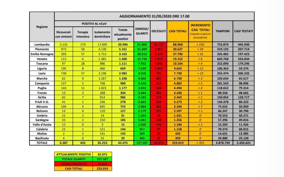 POSITIVI: 233.019 (+355)