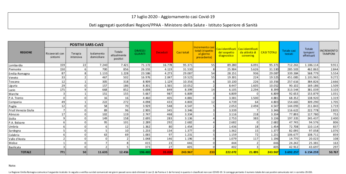 News / I dati diffusi dalla Protezione Civile