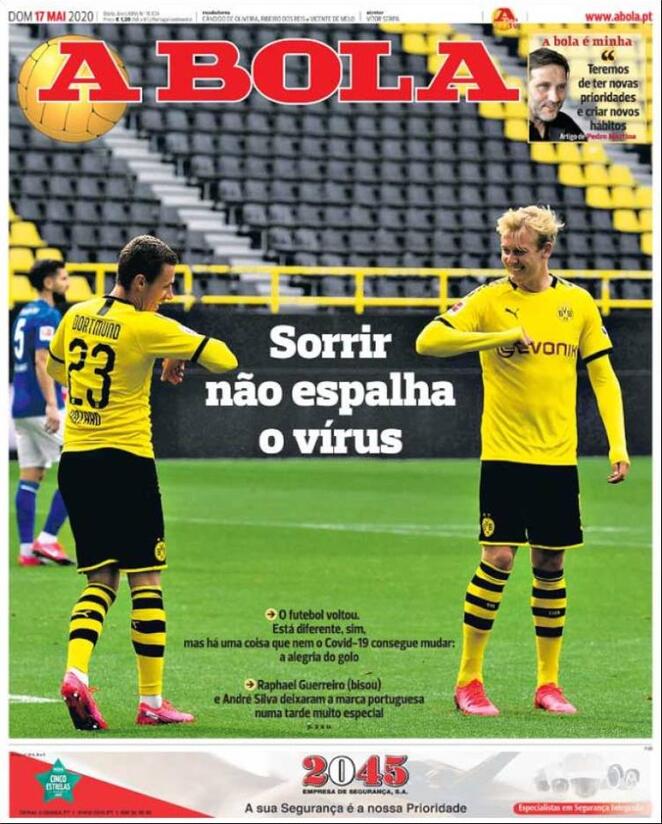 "Il calcio torna e il fenomeno del Dortmund segna la prima rete in Bundesliga tra le regole del covid: porte chiuse, palloni sanificati, riserve in tribuna".