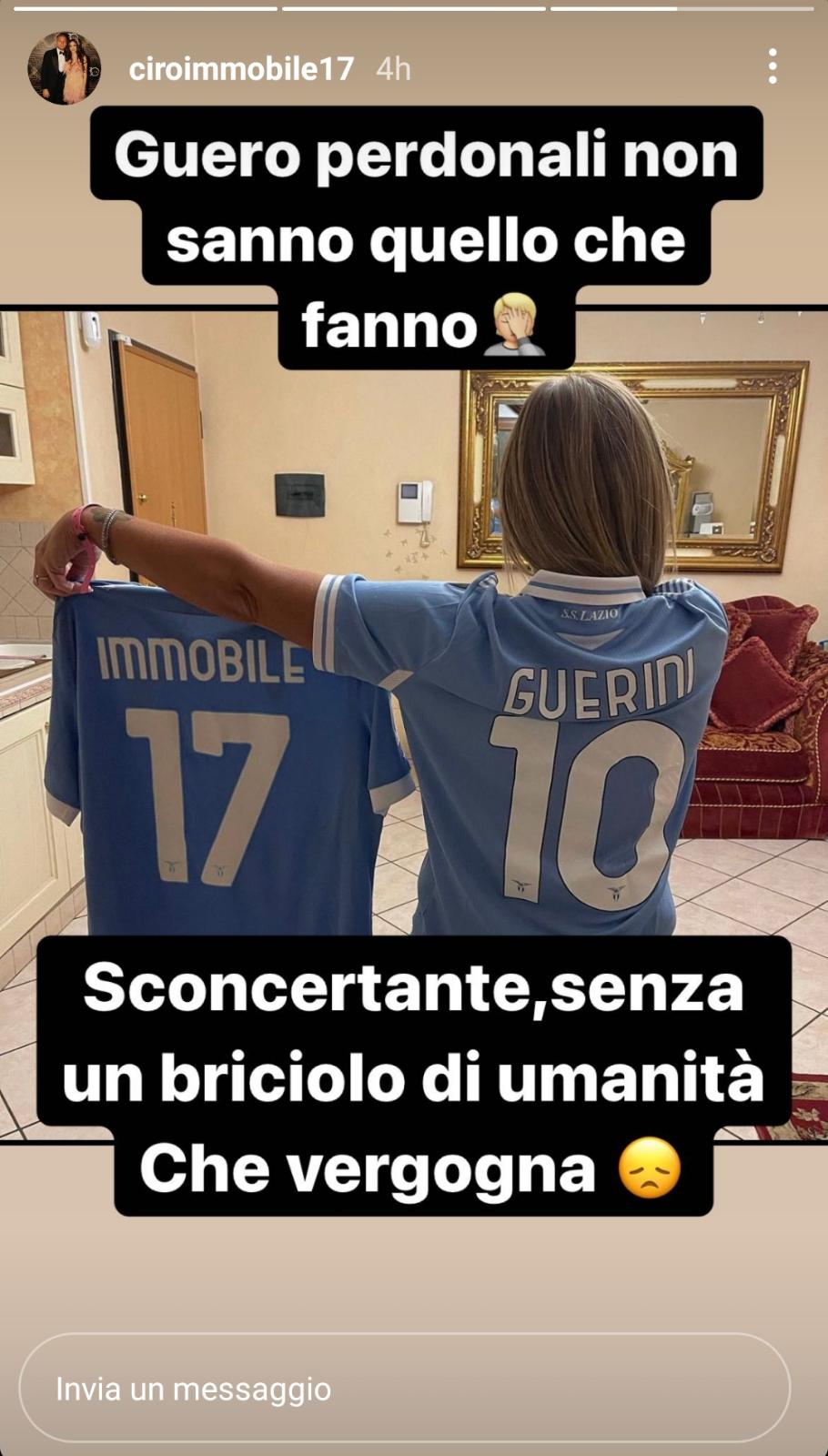 Ma la mamma di Daniel Guerini non è la sola a essere intervenuta sulla vicenda, ecco anche il messaggio del capitano biancoceleste Ciro Immobile: "Guero perdonali non sanno quel che fanno. Sconcertante, senza un briciolo di umanità. Che vergogna".