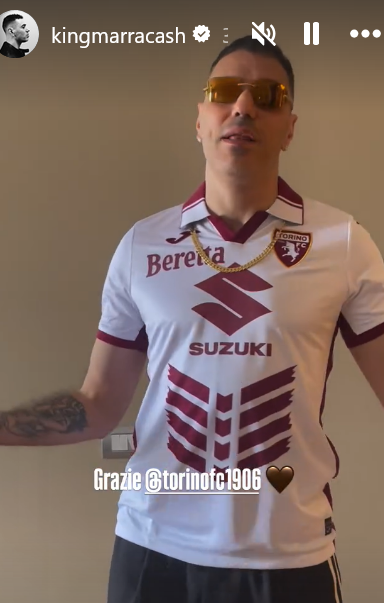 Il rapper ha ricevuto in regalo dal club la seconda maglia del Torino
