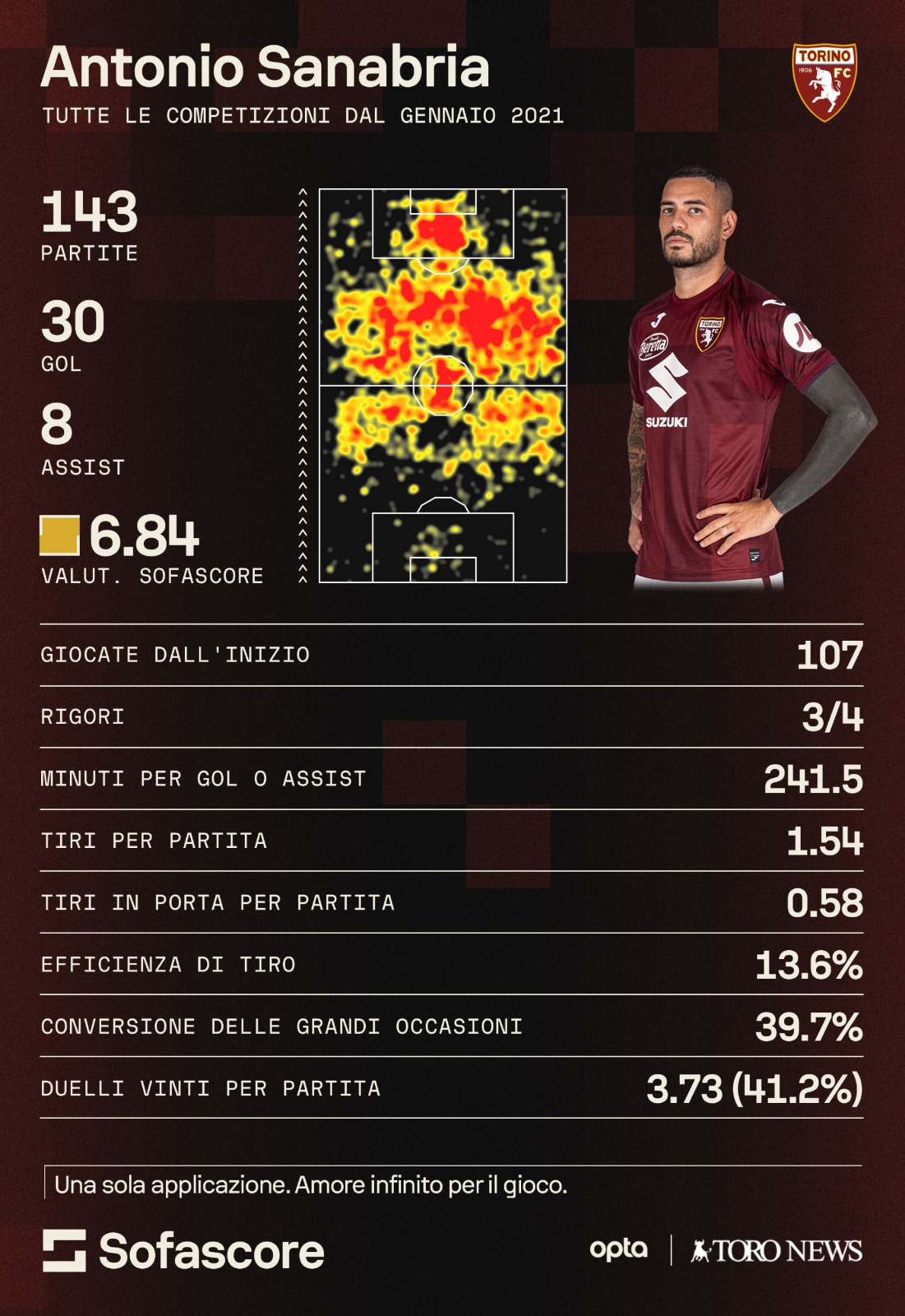 Il destino di Antonio Sanabria al Torino sembra ormai segnato. Dopo l’arrivo di Giovanni Simeone, l’attaccante paraguaiano è finito ai margini del progetto tecnico di Marco Baroni. A confermarlo, senza troppi giri di parole, è stato lo stesso presidente Urbano Cairo qualche giorno fa: "Abbiamo Ngonge, Aboukhlal, Vlasic, Zapata, Simeone e Adams. Oltre a loro c'è Njie, ci sarebbe anche Sanabria ma penso che lo cederemo. L'attacco ha un potenziale altissimo, ci sono sei potenziali titolari per quattro ruoli". Parole che lasciano poco spazio all’interpretazione e che, di fatto, aprono la porta a una sua partenza già in questa sessione di mercato per l'attaccante paraguaiano che da gennaio 2021 ad oggi ha messo ha referto 30 reti e 8 assist in 143 presenze complessive con la divisa del Toro e che vanta una conversione delle grandi occasioni pari al 39, 7%, come si evince dai dati di Sofascore.