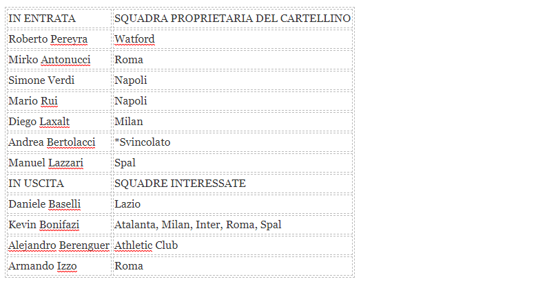 INTERESSE - Tante trattative, tante voci, ma ancora poche trattative effettivamente imbastite o ben avviate. In questi primi giorni di giugno sono stati diversi i giocatori accostati al Torino: da Verdi a Pereyra, passando per Antonucci, Bertolacci, Laxalt e Mario Rui. Gli identikit che cerca il Torino al momento sono tre: un centrocampista, un esterno e una seconda punta che sia in grado di dare maggiore supporto a Belotti in fase offensiva. In uscita invece da registrare l'interesse della Lazio per Baselli, che però tramite il suo procuratore ha smentito categoricamente. Nomi caldi anche quelli di Berenguer (su di lui c'è l'Athletic Club) e Bonifazi, che dopo l'ottimo anno alla Spal farà ritorno al Torino. Tanti gli estimatori del classe 1996: Atalanta, Inter, Milan e non solo. Il suo futuro potrebbe essere deciso in ritiro.