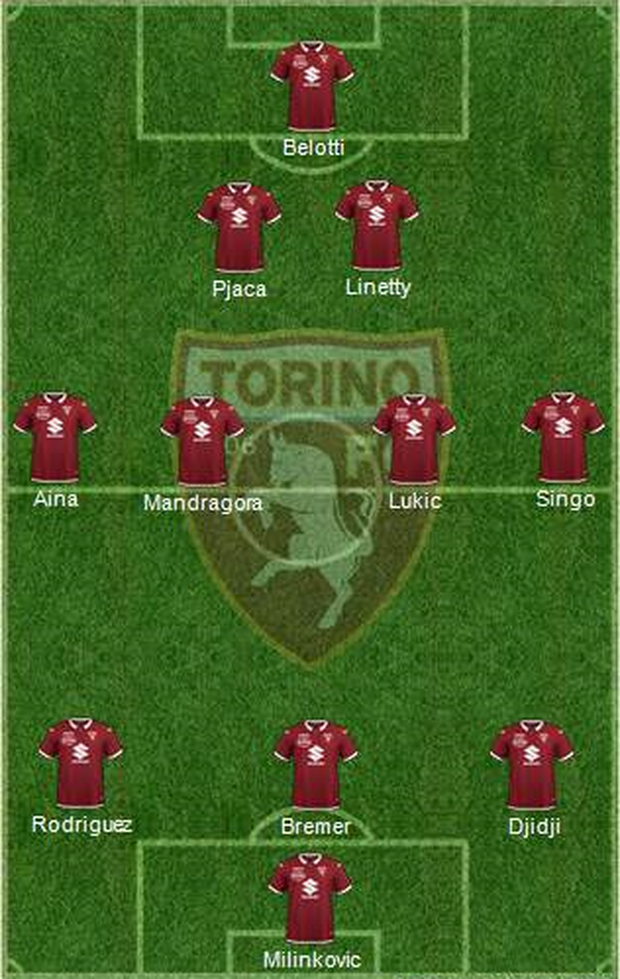 TORINO (3-4-2-1): Milinkovic; Izzo, Bremer, Buongiorno; Singo, Lukic, Mandragora, Aina; Linetty, Pjaca; Belotti.