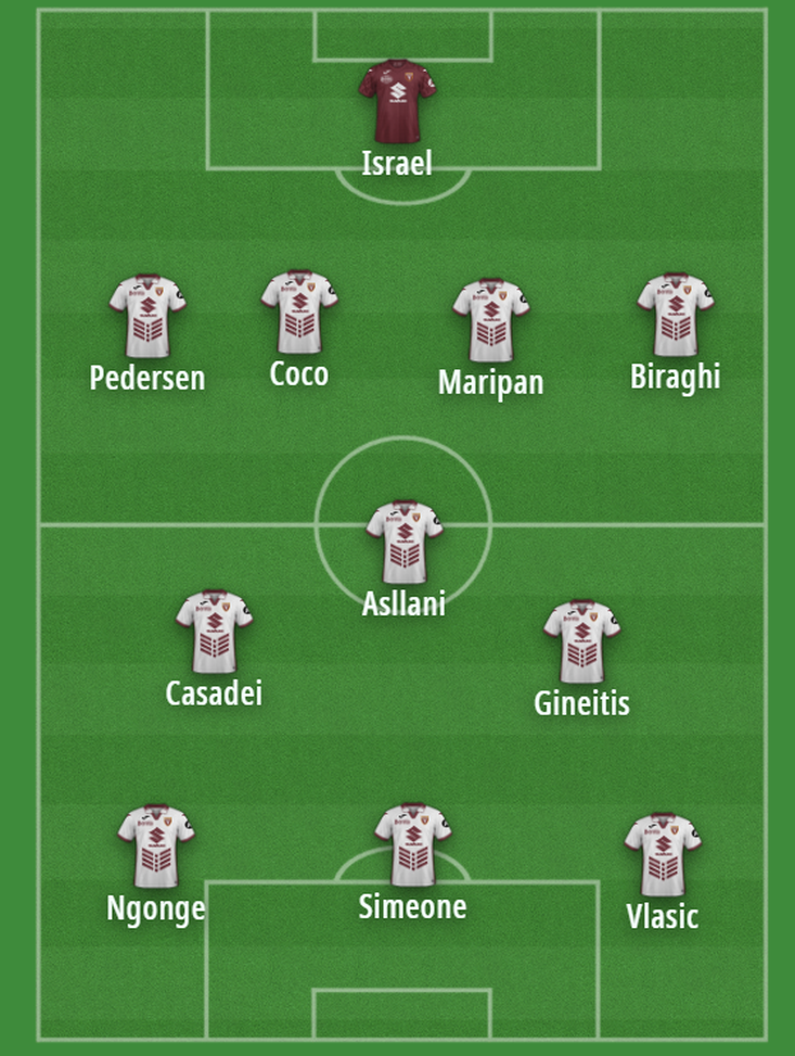 Marco Baroni dopo aver lavorato per un mese sul 4-2-3-1 è passato al 4-3-3 nel secondo tempo della partita di Coppa Italia contro il Modena. Lo stesso modulo è stato confermato contro Inter e Fiorentina. L'ipotetico undici prevede: Israel in porta, Biraghi a sinistra e Pedersen a destra; in mezzo favoriti Coco e Maripan. In mediana Asllani con Gineitis a sinistra e Casadei a destra. In avanti l'ipotetico tridente al momento prevede Simeone al centro, Vlasic e Ngonge sulle corsie.