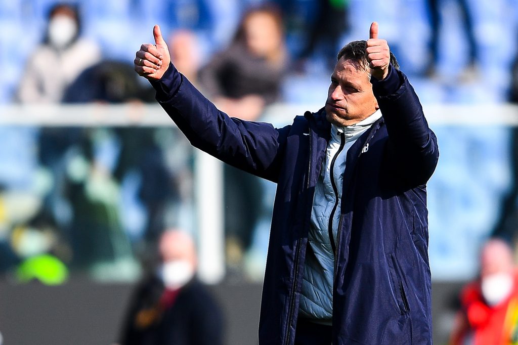 GENOA, ITALY - MARCH 6: Alexander Blessin head coach of Genoa applauds the supporters after the Serie A match between Genoa CFC and Empoli FC at Stadio Luigi Ferraris on March 6, 2022 in Genoa, Italy. (Photo by Getty Images)