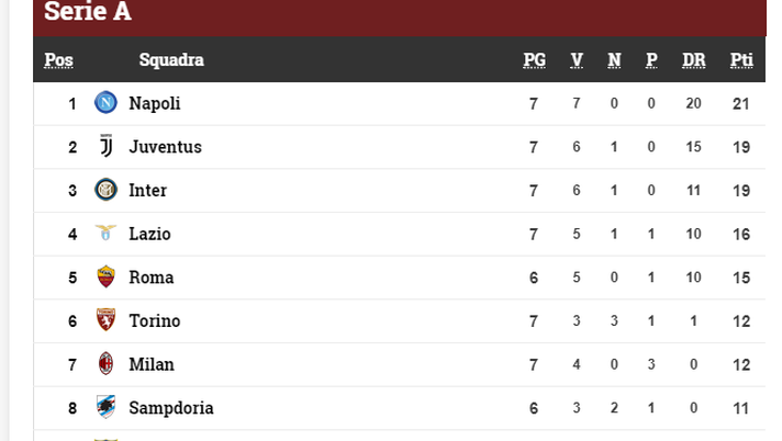 "Termina anche questa domenica di calcio con il pareggio della Juventus contro l'Atalanta, i bianconeri perdono il primo posto è così il Napoli resta capolista solitaria. I partenopei hanno vinto oggi nel lunch match contro il Cagliari per 3-0. Facciamo un passo indietro però e andiamo a vedere i risultati che si sono verificati ieri. L'Udinese ha rifilato un poker alla Sampdoria e così i blucerchiati restano sotto di un punto dal Toro, che ha pareggiato oggi contro il Verona, mentre i friulani si portano al 13° posto a quota sei punti.