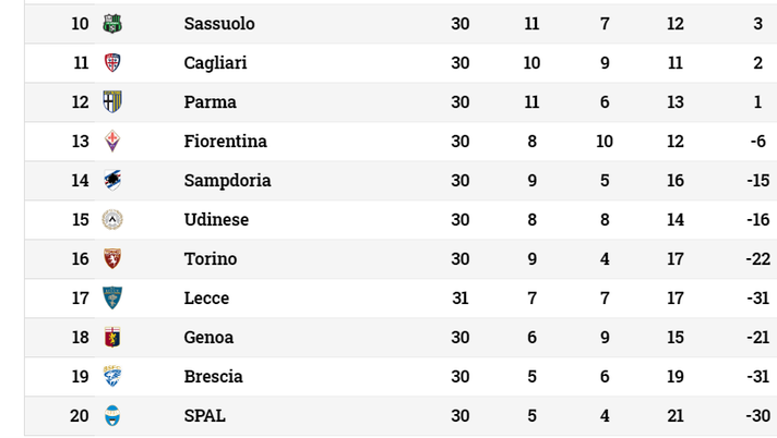 Il 31° turno di Serie A non poteva iniziare peggio per il Torino di Moreno Longo. Il Lecce ha sconfitto la Lazio 2 a 1, rianimandosi dopo un periodo post-Covid di grande appannamento. Detto che la Juventus ha sempre più lo scudetto in mano, la cosa che più interessa ai granata è la zona rossa. Il Lecce è salito a quota 28 punti, superando il Genoa (27 punti) e portandosi a sole 3 lunghezze dal Torino con gli scontri diretti ampiamente a favore dei salentini (1 a 2 al "Grande Torino", 4 a 0 al "Via del Mare"). Con una partita in meno, se finisse in questo il momento il campionato, il Genoa sarebbe la terza retrocessa. Il Grifone domani affronterà il Napoli alle 19.30 a Marassi e potrebbe potenzialmente effettuare il controsorpasso sui pugliesi. Chiaro che con la sorprendente vittoria del Lecce odierna, firmata Babacar e Lucioni, la gara di domani tra Torino e Brescia alle 21.45 diventa ancor più cruciale. Un'eventuale vittoria granata terrebbe il Torino al di sopra della linea di galleggiamento. In caso contrario sarebbe piena, pienissima bagarre per salvaguardare la Serie A. Al momento i punti di margine sono diventati solamente 4, non più sul Lecce bensì sul Genoa.