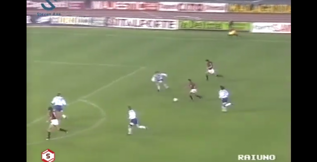 La serata inizia con una di quelle notizie che non vorresti mai sentire: Massimiliano Catena, ragazzo del Fila (sedici presenze nel 1988/89) ora protagonista al Cosenza, muore in un tragico incidente stradale di ritorno da una visita al padre, gravemente malato. Pochi giorni prima aveva segnato contro la Ternana e corso per tutto il campo per andare a festeggiare coi suoi tifosi in una di quelle scene che a pensarci mettono i brividi e fanno pensare a qualcosa di beffardamente scritto, anche se di scritto forse non c’è niente. Silenzi, suo ex compagno alla Reggiana, gli dedicherà in lacrime il gol che segnerà alla Sampdoria la domenica successiva.