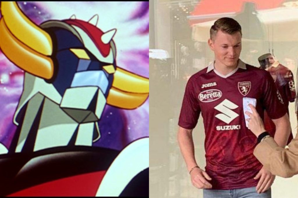 Ci commuoviamo ancora oggi quando brandelli di quei cartoni animati ricompaiono in tv: non li hanno più trasmessi in chiaro ed è un peccato, perché emozionerebbero ancora bambini piccoli e grandi. La maglia del Toro in salsa giapponese dedicata allo sponsor Suzuki mi ha fatto uno strano effetto nostalgia con tutti quei rimandi alla tradizione nipponica: lampi che ricordano i disintegratori paralleli che Goldrake sprigionava dalle mani (quelli che la canzone descrive come raggi laser che sembran fulmini) e onde che, con uno sforzo di fantasia, possono riportare alla memoria il raggio antigravità multicolore emesso dalla V rossa che gli ornava il petto.