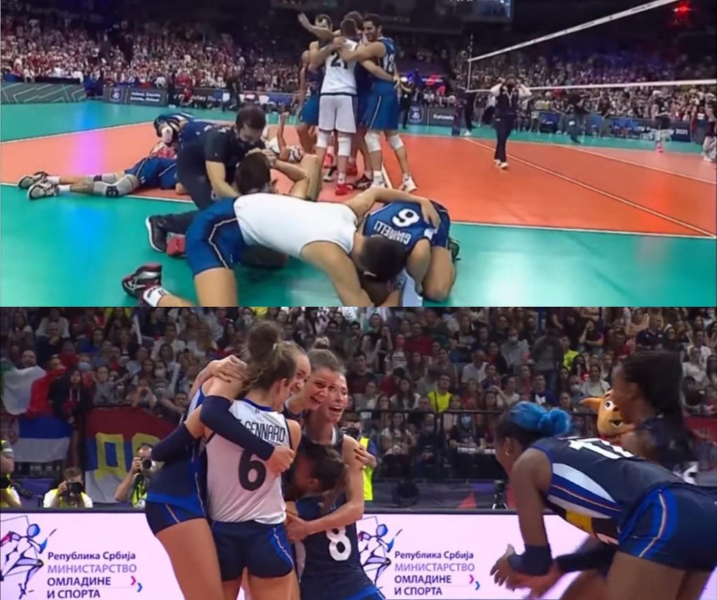 “Non arrenderti mai, se non per convinzioni di onore e di buon senso”, soleva dire il buon Winston Churchill, nella convinzione come a volte l’ostinazione non sia un banale sinonimo di testardaggine, ma una delle più grandi prove di coraggio richieste dalla vita come pegno di appartenenza. Arrivare nel gradino più alto di un podio di una competizione internazionale tra nazioni è lustro e momento di gioia per un popolo intero. E’ l’occasione per guardarsi tutti in faccia e scoprire come ancora si sia vitali, proprio quando tutto remava verso la riva delle persone perdute alla speranza. Ma quando guardi quelle maglie azzurre indossate da giovani uomini felici, mentre portano la mano sul cuore e cantano a squarciagola “l’Inno di Mameli”, non dimenticare mai di spostare lo sguardo verso persone un po’ più attempate, felici e in lacrime per ciò che stanno osservando. Sono tutti quelli che hanno lavorato nelle retrovie (tecnici, staff sanitario, match analyst, ecc.), nella convinzione di come il sogno della vittoria si potesse realizzare. Per i loro giocatori, per loro stessi, per tutti noi rimasti a casa a lottare nei vari ingorghi delle fatiche quotidiane. La pallavolo italiana, la magnifica pallavolo italiana, è riuscita nell’impresa mai compiuta al di qua del vecchio “Muro di Berlino”, ovvero imporsi nello stesso anno nelle due massime competizioni continentali per nazioni (femminile e maschile).