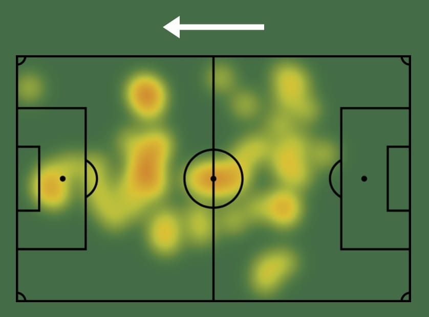 In fase di possesso, il Toro ha cercato di mettere in difficoltà gli avversari con tante rotazioni a centrocampo, in modo da scalfire la grande solidità centrale dei rossoblù. Si è venuto a creare più volte un quadrilatero formato da Linetty, Ilic, Vlasic e Sanabria, che come vediamo dalla sua heat map, ha toccato diversi palloni anche nel primo terzo di campo.L'obiettivo dei granata era quello di avere la superiorità numerica sulla trequarti, e di aggirare il pressing a uomo del Bologna, giocando dietro le linee.
