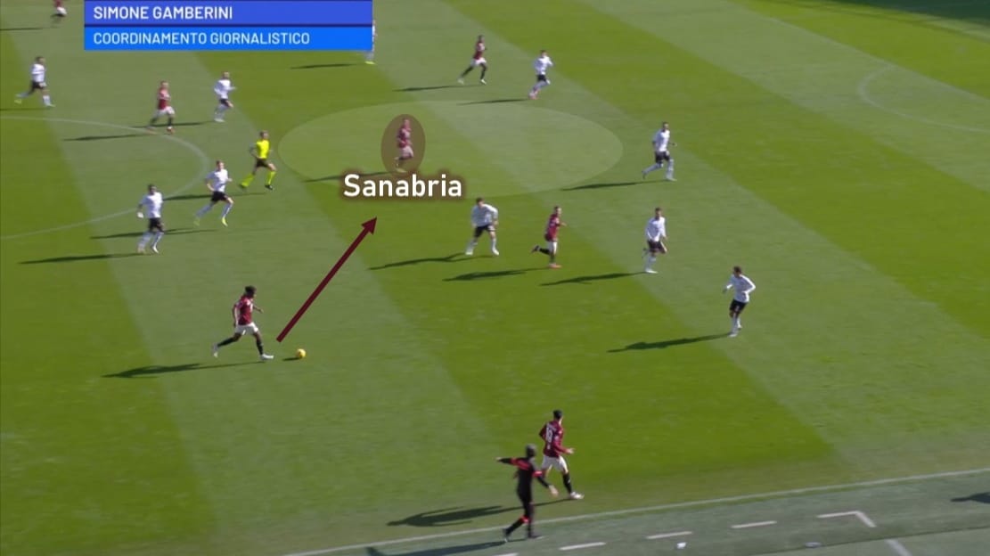 A volte queste zone non erano facili da varcare, quindi si poteva optare per il cambio gioco passando da Sanabria per il centro, che si staccava bene dalla marcatura per ricevere.