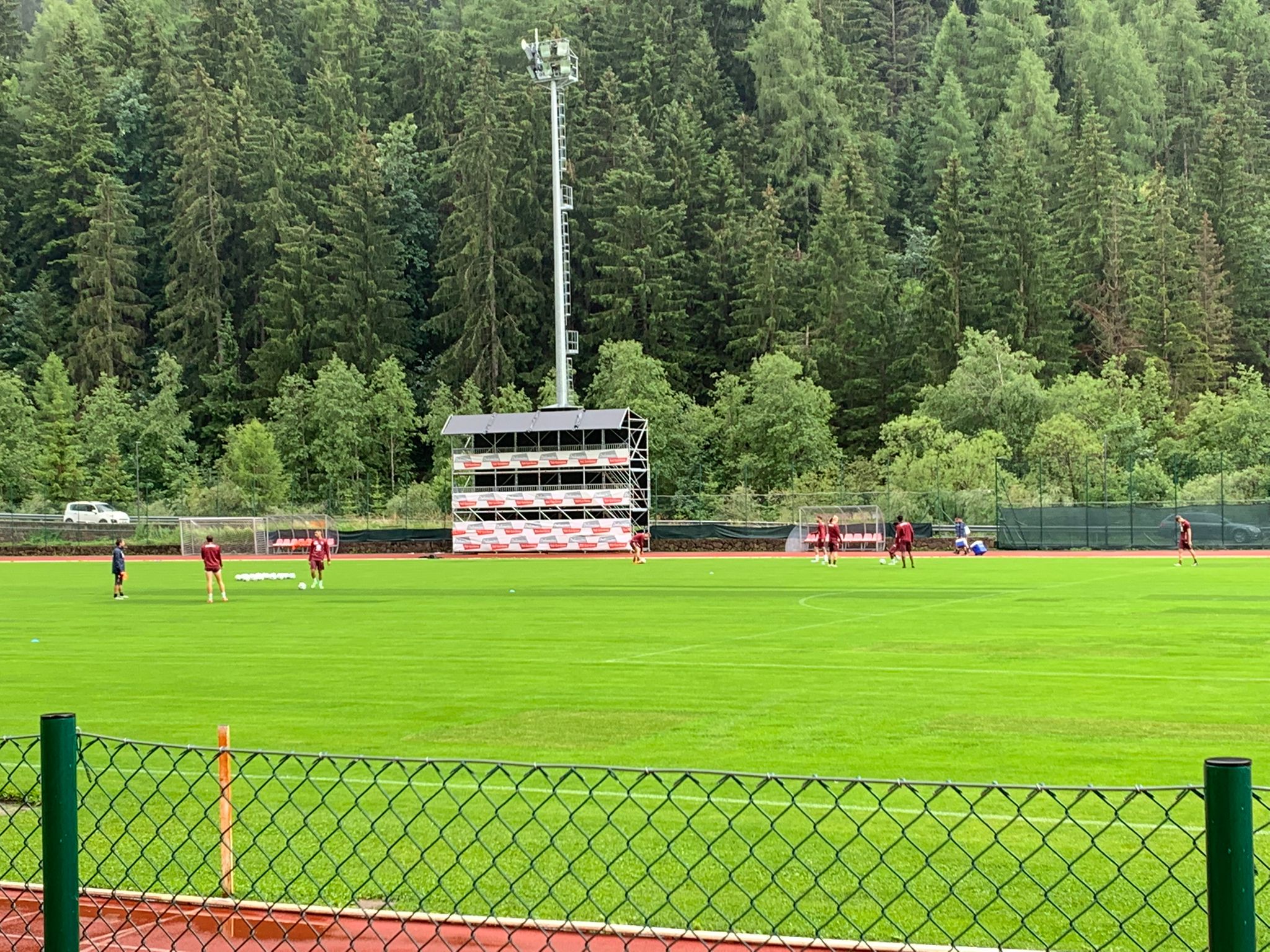 La squadra non è ancora uscita dalla palestra, ma dovrebbe farlo a breve. Lo staff tecnico ha posizionato i palloni sul terreno di gioco