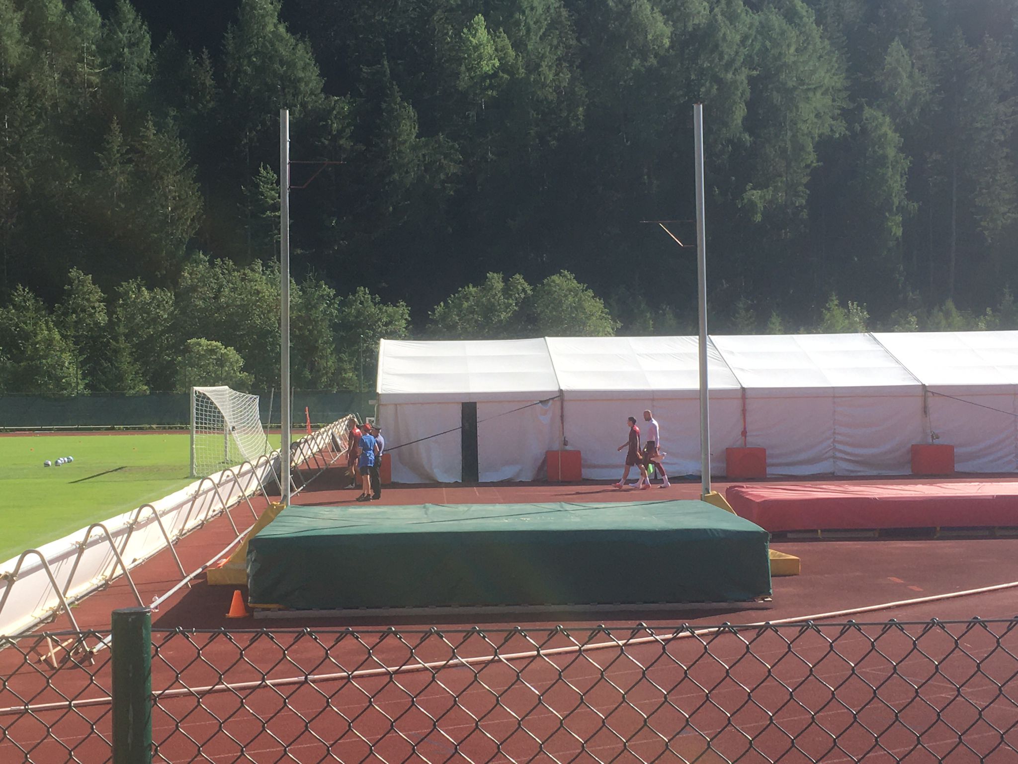Giocatori in pausa adesso, si procede con l'allestimento del campo per la partitella