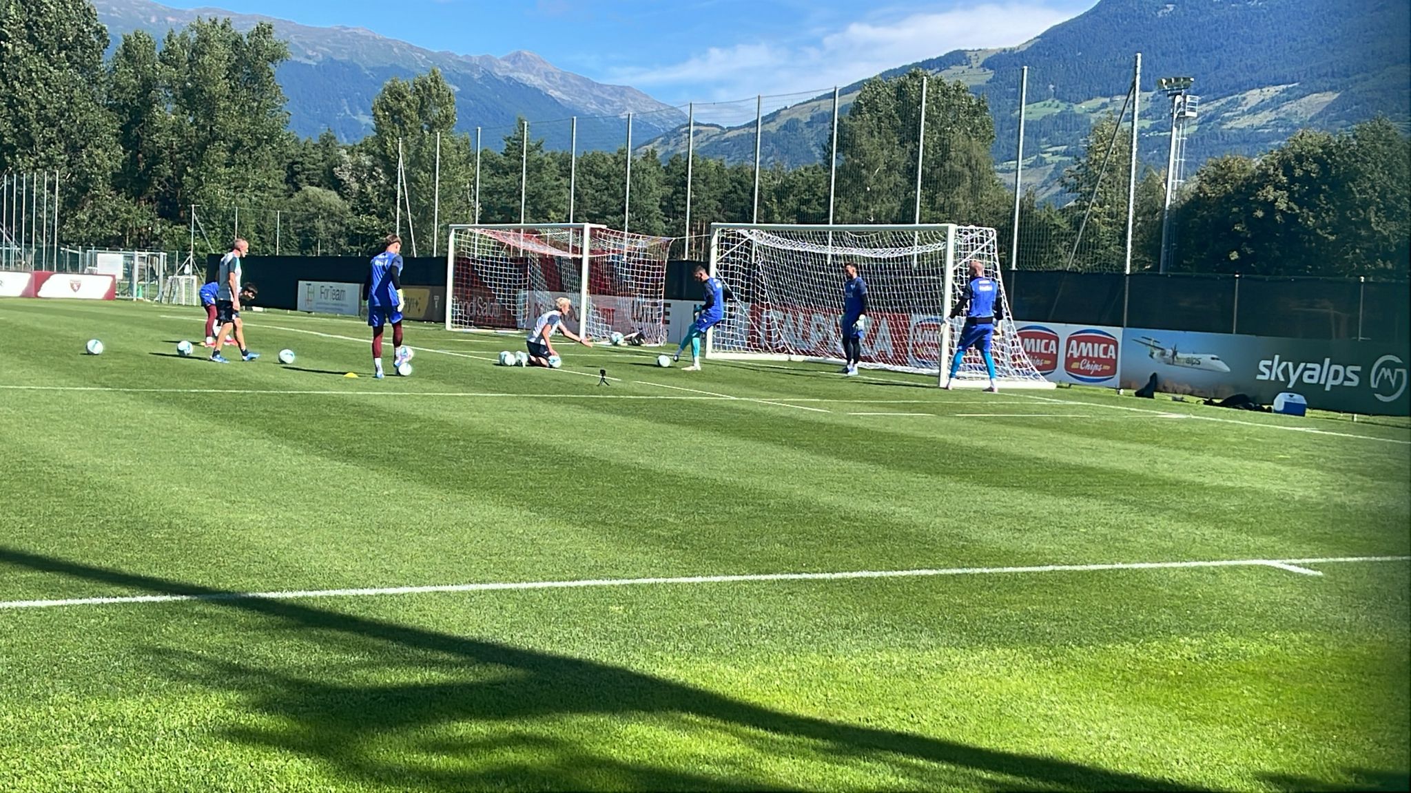 Lavoro molto intenso per i portieri con i preparatori Castiglioni e Ronzani che li stressano in particolare sulla reattività e sulla spinta