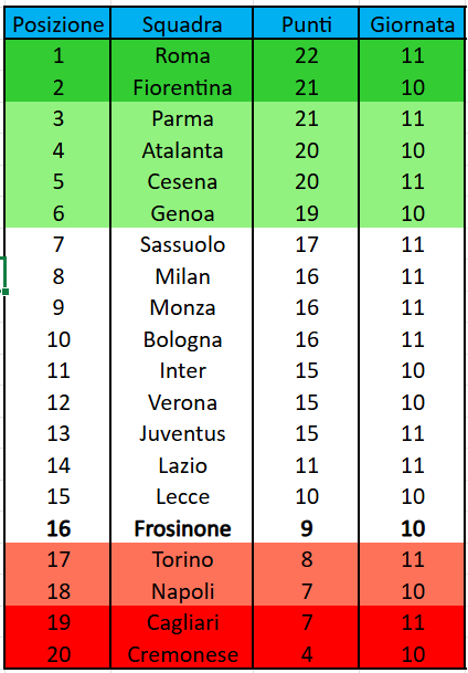 Il Torino non trova il bottino pieno contro il Monza e resta inchiodato in zona playout. I granata prima della gara occupavano il diciassettesimo posto, il primo dei due che condannano ai playout, a quota 7 punti. Ora la squadra di Baldini, dopo lo 0-0 contro i brianzoli, fa un passetto raggiungendo quota 8 punti ma è uno step che non basta per il sorpasso temporaneo al Frosinone, che resta davanti di una lunghezza in attesa di disputare la gara con la Fiorentina. Il Monza era nono e resta tale con un bottino di 16 punti.