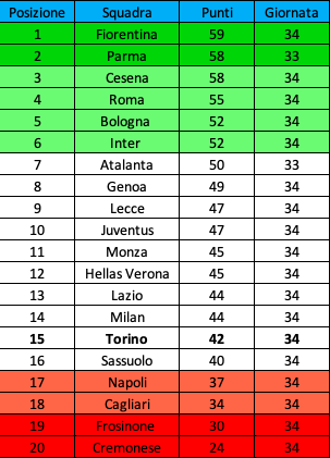Il Torino esce sconfitto per 4-2 dalla trasferta di Genova contro il Genoa. Battuta d'arresto per i granata dopo la vittoria nel turno precedente contro la Cremonese. Una sconfitta però che non complica più di tanto la classifica dei granata. Il vantaggio sul Napoli diciassettesimo resta di cinque punti, ma resta comunque il rammarico. Con una vittoria i granata sarebbero andati a +8, mettendo una seria ipoteca sulla salvezza diretta senza passare dalla pericolosa coda dei playout.
