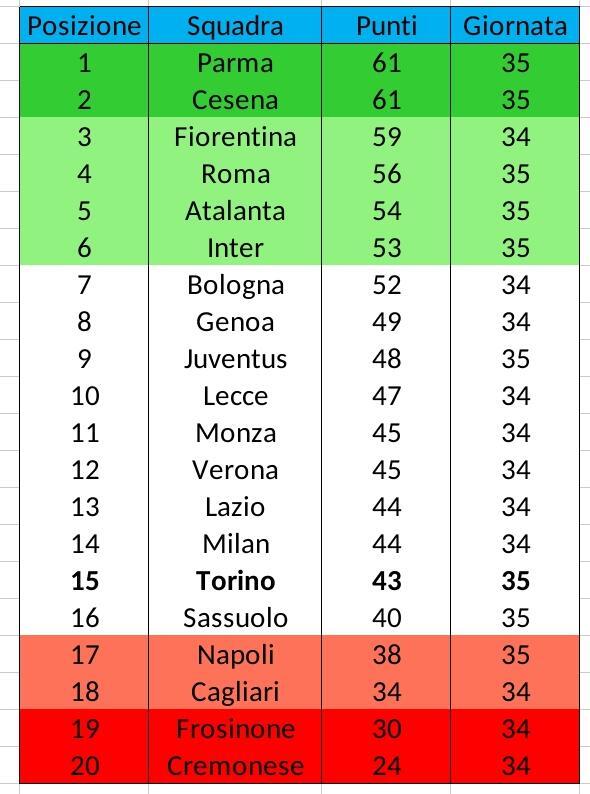 I risultati della 35^ giornata