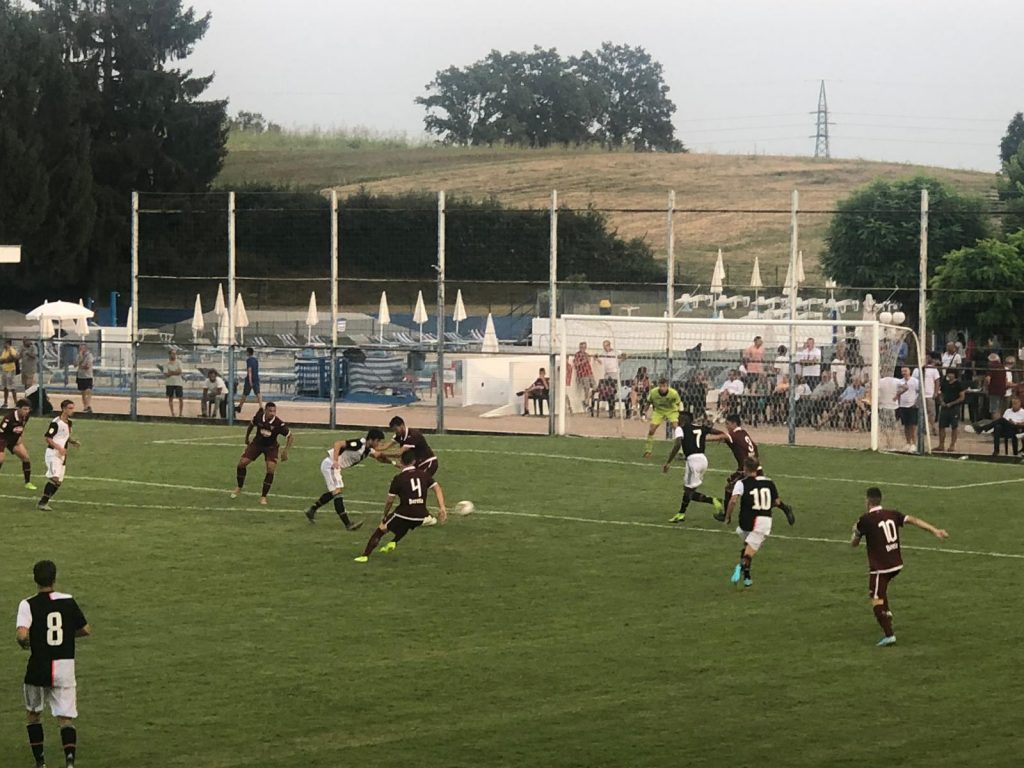 Nel primo tempo la partita ha contenuti agonistici interessanti, con entrambe le squadre che si danno battaglia su ogni pallone, ma offre pochi spunti puramente tecnici. Poche le occasioni da gol. Le due migliori capitano a Rauti, che si è involato davanti al portiere concludendo però centrale, e al bianconero Petrelli, che ha tentato di beffare un'uscita del portiere Trombini con uno scavetto che però termina fuori.