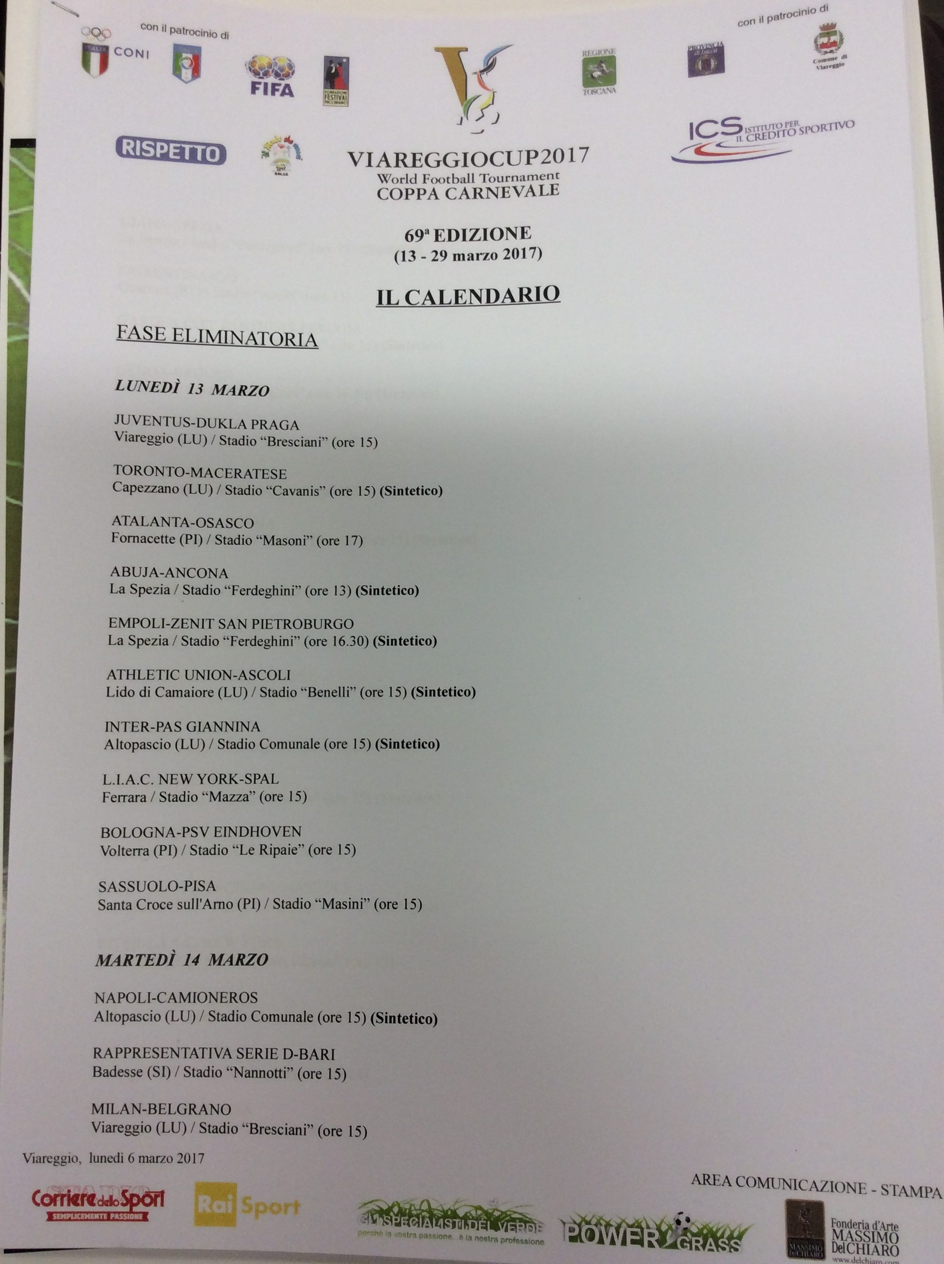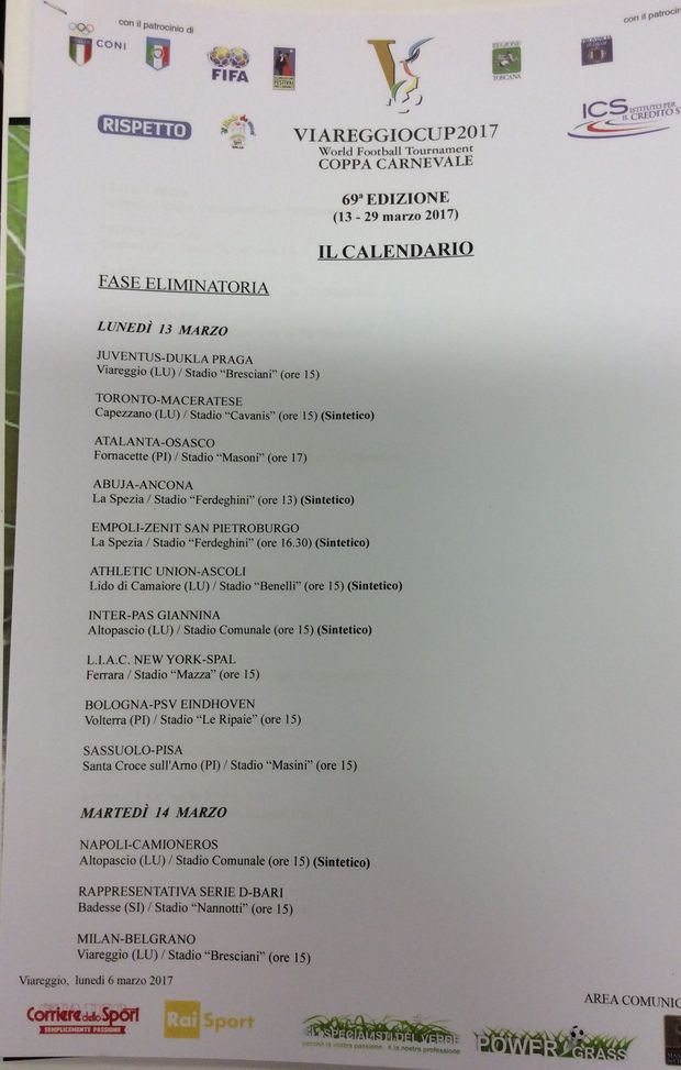 Siamo ormai agli sgoccioli, mancano solo sette giorni all’inaugurazione della 69^ Viareggio Cup. La prestigiosa competizione di calcio giovanile internazionale allarga i propri orizzonti a 40 squadre proveniente dai quattro angoli del globo, con ben diciassette compagni straniere ai nastri di partenza: si preannuncia un torneo indimenticabile. La partita d’inaugurazione dell’edizione 2017 della Viareggio Cup vedrà affrontarsi lunedì 13 marzo la Juventus e il Dukla Praga, in una sfida dal grandissimo valore storico: l’italiana più titolata contro la straniera più titolata.