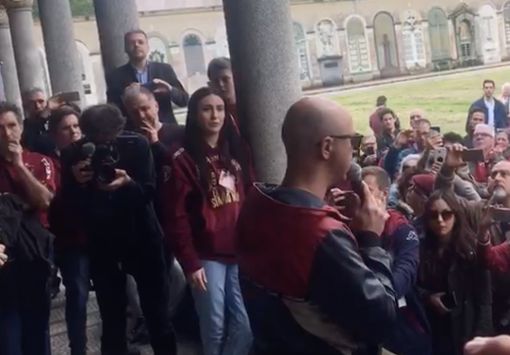 “È nata sulla scia di quella dell’Unione club granata che diceva di uscire sui balconi con sciarpe e bandiere. Noi abbiamo proposto di aggiungere la nostra canzone come sottofondo, dando vita ad un vero e proprio flash mob ognuno nel proprio domicilio. Ci sembrava un’idea molto interessante, perché durante la quarantena in tanti hanno cantato sui balconi”.