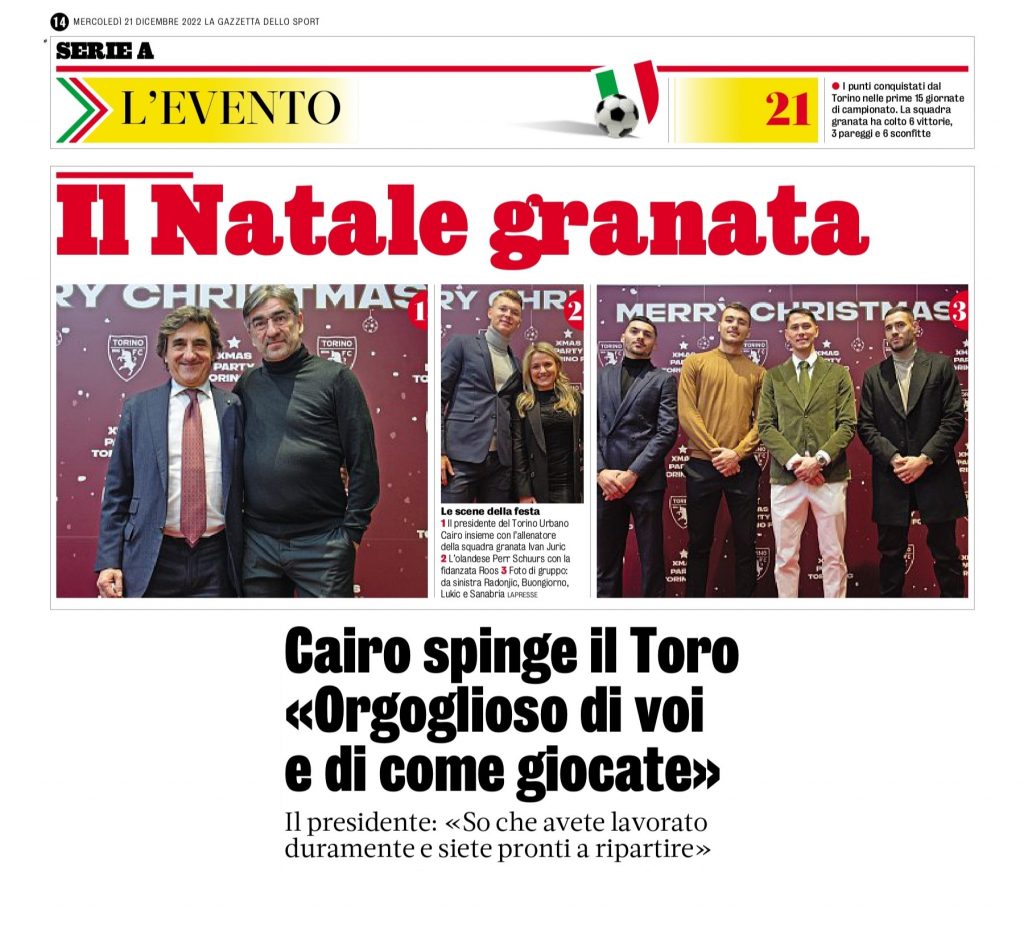 “Spero che i vostri alberi di Natale siano tutti accesi di palline granata. Un Buon Natale da parte mia e forza Toro”.
