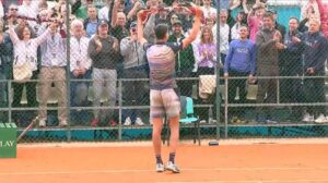 Lorenzo Sonego vince contro Aliassime e per festeggiare mostra la sciarpa del Torino