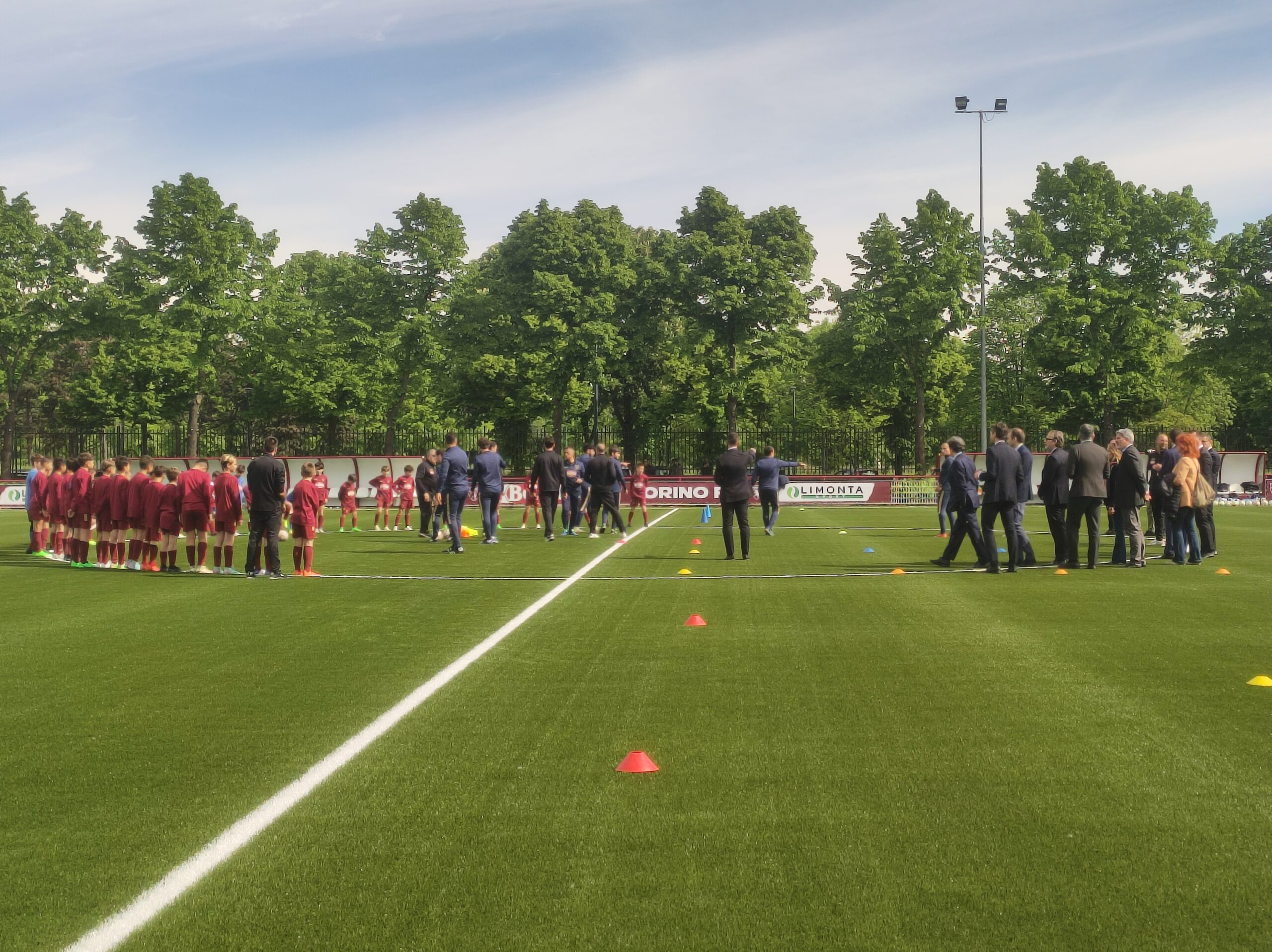 Cairo ha simbolicamente inaugurato il campo calciando il primo pallone, poi spazio alla partitella dei giovani granata della Scuola Calcio