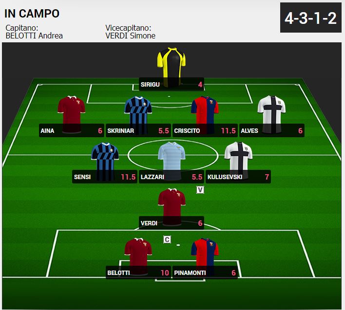 Menzione per il gallo Belotti che prende un voto puro più basso di questi 3 (6,5) ma prende 3,5 punti bonus grazie al rigore segnato e al voto positivo da capitano per un totale di 10 punti.
