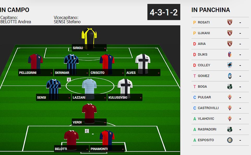 Quarta giornata di Serie A e del campionato magic gazzetta. La redazione effettua solo un cambio negli undici titolari rispetto ad una settimana fa. Andiamo a vedere la formazione.