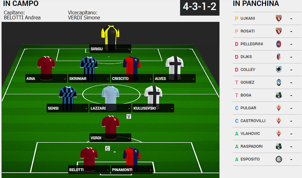 Belotti: la punta titolare nella nostra formazione. Ci aspettiamo dal gallo una stagione ricca di gol e bonus, a partire dalla partita contro il Lecce. Sarà anche il capitano di questa giornata.