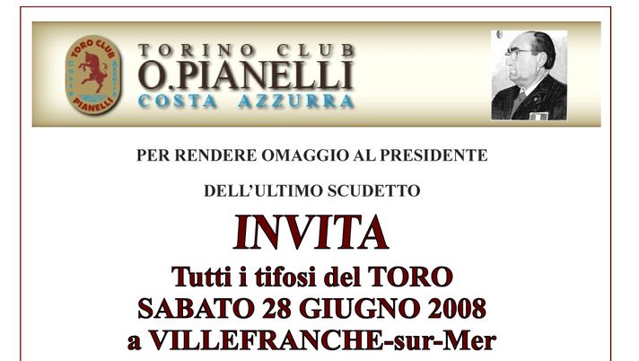 Il Toro Club Costa Azzurra dedicato alla memoria di Orfeo Pianelli, celebra sabato 28 giugno il ricordo del grande presidente granata a Villefranche sur Mer, cittadina alle porte di Nizza presso il cui cimitero è...