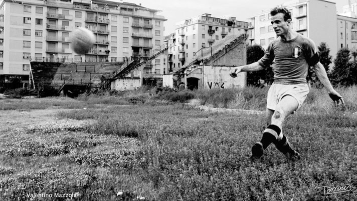 I fotomontaggi di Attanasio accostano in modo ardito, ma efficace, fotografie d’epoca dei grandi calciatori del Torino fermati nel loro gesto atletico sul campo del “Fila” così come appare oggi.