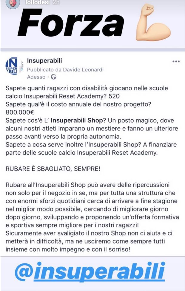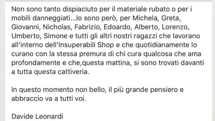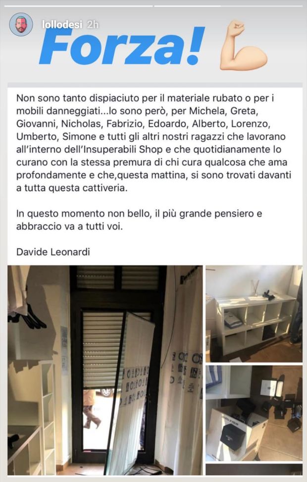 Furto all’Insuperabili Shop, il sostegno di De Silvestri: “Forza!”