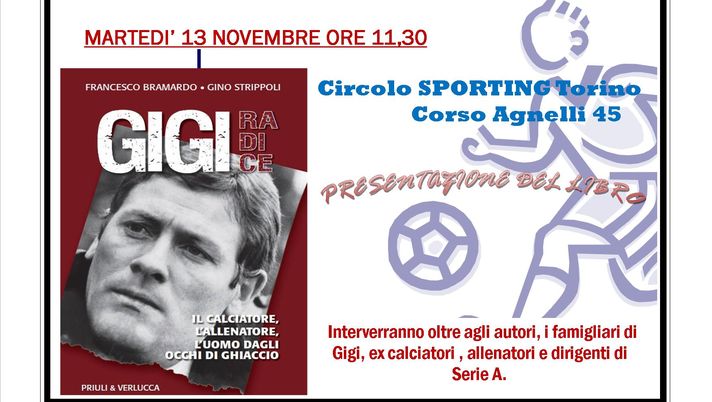 Oggi alle ore 11:30 in corso Agnelli 45 a Torino al Circolo della Stampa-Sporting gli autori Francesco Bramardo e Gino Strippoli (editorialista di Toro News) presenteranno il loro libro biografico "Gigi Radice, il calciatore, l'allenatore, l'uomo dagli occhi di ghiaccio" con l'Editore Priuli&Verlucca. Oltre ai due autori interverranno i famigliari di Gigi Radice, Mirko Ferretti, vice allenatore di Radice, e molti ex calciatori dello Scudetto datato 1975/1976. Da giovedì 15 novembre il libro potrà essere acquistato nelle librerie.