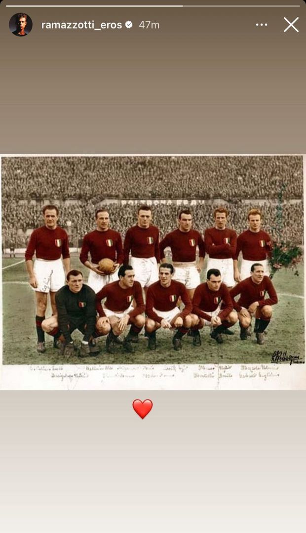 Anche Eros Ramazzotti sulle stories di Instagram ha voluto omaggiare con un cuore rosso e una foto del Grande Torino gli Invicinbili in questo 4 maggio. Noto tifoso della Juventus, Ramazzotti ha confermato con il suo gesto che le tragedie non hanno colore e tifo.