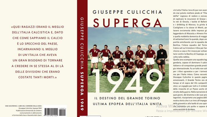 Il Grande Torino ha rappresentato una pagina di storia per tutta l'Italia, non solo per il calcio o per il Torino. Simbolo della rinascita di un paese uscito distrutto dalla guerra, era l'orgoglio di tutti gli italiani. L'importanza che rivestirono Mazzola e compagni a livello sociale è il tema principale di "Superga 1949 - Il destino del Grande Torino Ultima epopea dell'Italia unita", libro di Giuseppe Culicchia edito da Solferino. Uscirà il 4 maggio con il Corriere della Sera, la Gazzetta dello Sport e nelle librerie.