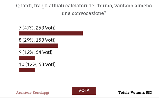 "Il terzo quesito era a proposito della rosa attuale: sono stati tanti i giocatori ad aver ricevuto almeno una convocazione in Nazionale italiana, ma precisamente, sono stati in nove. I nomi di questi giocatori sono: Padelli, Molinaro, Rossettini, De Silvestri, Moretti, Valdifiori, Zappacosta, Benassi e Belotti. La percentuale delle risposte corrette, in questa domanda, è stata davvero molto bassa: soltanto il 12% dei lettori ha risposto in modo appropriato!