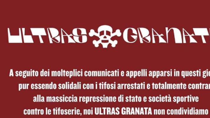 "A seguito dei molteplici comunicati e appelli apparsi in questi giorni, pur essendo solidali con i tifosi arrestati e totalmente contrari alla massiccia repressione di stato e società sportive contro le tifoserie, noi Ultras Granata non condividiamo la protesta organizzata dalla Curva Primavera in quanto essere Ultras significa anche essere consapevoli delle conseguenze che ne derivano. In questi anni tutte le tifoserie italiane sono state fortemente colpite da diffide e arresti, noi stessi abbiamo svariate persone diffidate e processi in corso. Nessun Ultras si erge né a vittima del sistema, né ad eroe, ma continua a lottare per ciò in cui crede".