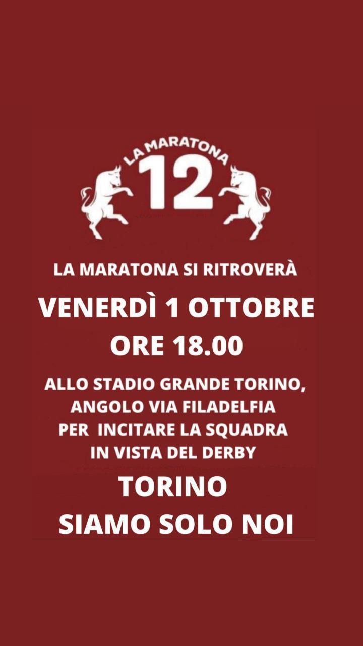 Nonostante la loro protesta contro le limitazioni anti-Covid che hanno portato alla scelta di non essere presenti sugli spalti, gli Ultras della Maratona hanno intenzione di caricare la squadra in vista della partita contro la Juventus. Nel giorno della vigilia del derby, venerdì 1 ottobre, i tifosi della curva hanno fissato l'appuntamento alle 18.00, fuori dallo stadio Grande Torino, per incitare i ragazzi di Ivan Juric. I calciatori granata avranno comunque un buon sostegno dai tifosi che sabato saranno presenti allo stadio, data la quantità di biglietti venduti. Attualmente, tre settori su quattro (curva Maratona, Distinti e Tribuna) sono esauriti. All'appello manca solo la curva Primavera, che però si sta indirizzando anch'essa al sold-out.