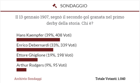 "Era il 13 gennaio 1907 e sotto la una neve fitta, al Velodromo Umberto I di Torino andava in scena il primo derby della Mole della storia. Finì 2-1 per i granata, che sbloccarono il risultato con Ferrari-Orsi. La rete del provvisorio 2-0 Toro, invece, fu avvolta dal mistero per quanto riguarda l'orario, con le cronache dell'epoca ancora poco precise che non riportarono il minuto esatto della realizzazione, che convenzionalmente si fissa al 60'. Chi segnò quella rete?