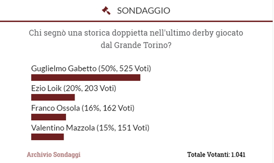 "Si trattava di Ezio Loik, ed è proprio questo il quesito che più vi ha tratti in inganno! Solamente il 20% dei votanti ha risposto correttamente, mentre addirittura il 50% si è affidato alle innate doti balistiche di Guglielmo Gabetto: in quello'occasione tuttavia il Barone granata siglò 'solamente' una rete, quella che aprì le marcature.