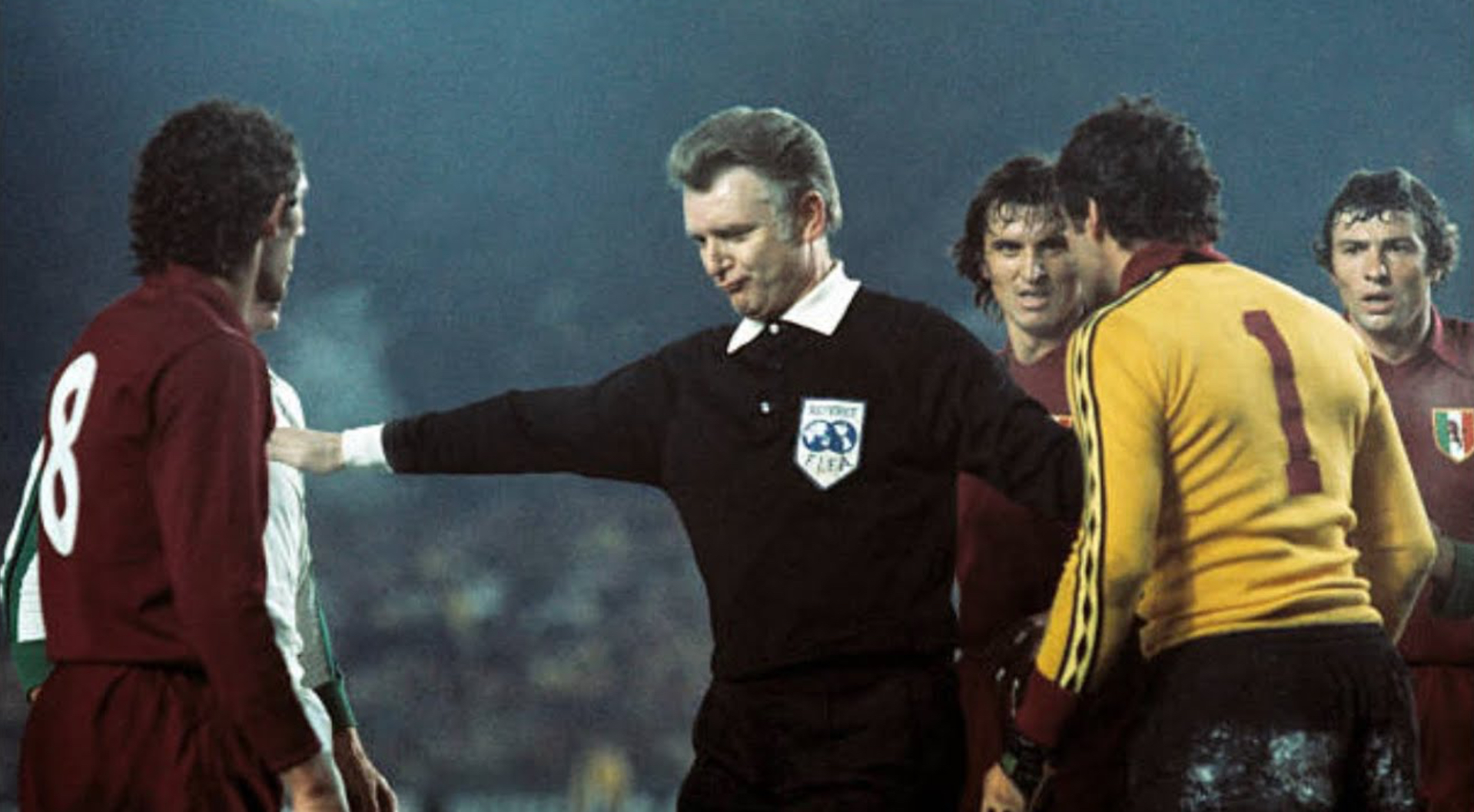 Andata del secondo turno, Torino-Borussia Monchengladbach, 20 ottobre. Comunale gremito, più di 70mila spettatori accorsi a spingere il Toro in questa impresa che alla vigilia sembrò insormontabile: nonostante il buon periodo di risultati, la condizione fisica dei granata non pareva essere all’altezza di una gara dal simile peso specifico. Pecci, il cervello del centrocampo, assente per infortunio, capitan Claudio Sala non era al meglio della forma, ma fare a meno di lui in una partita del genere era impossibile. Il poeta infatti partì titolare alle spalle di Graziani e Garritano. Non Pulici. Il numero 11 granata non stava attraversando un periodo di forma brillante e Radice optò per la verve dell’attaccante calabrese che nell’ultimo incontro di campionato contro il Bologna andò a segno. Una scelta rischiosa e coraggiosa quella del “tedesco” che tuttavia non portò i suoi frutti, non tanto per demerito dei suoi ragazzi, quando per la forza degli avversarsi. Quadrati, tosti, rognosi nelle marcature a uomo, ma anche tecnici e veloci nel ripartire in contropiede per far male al Toro, che parte agguerrito in avvio provando subito a far capire al Borussia che la trasferta sotto la Mole non sarebbe stata una vacanza. Ci provano prima Claudio Sala e poi Patrizio Sala ma entrambe le conclusioni dalla distanza vengono murate dal panzer tedesco che si compatta bene nella sua metà campo e senza affanno riesce a negare ogni pertugio al Torino dove invece l’assenza di Pecci nel cuore del campo si fa sentire pesantemente. L’inizio del tracollo scocca al 23’ quando Claudio Sala alzò bandiera bianca: al suo posto Radice inserisce Pulici disegnando un Toro con tre punte, ma spaccato in due tronconi. Il centrocampo sorretto da Butti, Patrizio Sala e Zaccarelli non riesce a costruire e ad arginare, e non passa molto dal primo vantaggio del ‘Gladbach: Simonsen mette paura al Toro colpendo il palo e, poco dopo, da errore di Zaccarelli in mezzo al campo, Stiellke e Vogts danno via alla ripartenza che porta i tedeschi in vantaggio grazie alla rete di Vogts alla mezz’ora. Torino 0, Borussia 1 e primo tempo che si chiude con questo risultato. “Miracolosamente il Torino è riuscito a riorganizzarsi nel quarto d'ora d'intervallo e si è presentato nella ripresa di nuovo abbastanza ordinato, malgrado costretto ad uno schieramento chiaramente anomalo dalle tre punte in avanti. I granata poi hanno cercato di reagire con il grande cuore alla superiorità tecnica e di organizzazione degli avversari” - scrisse La Stampa del 21 ottobre 1976. L’animo e il cuore granata sorprende i tedeschi che in avvio di ripresa si fanno schiacciare dal forcing dei padroni di casa che, dopo un quarto d’ora, dagli sviluppi di un corner di Butti, riesce a portare i suoi frutti: traversone nel cuore dell’area che la difesa tedesca non libera del tutto, serie di batti e ribatti al limite dell’area con Patrizio Sala che, trovatosi il pallone fra i piedi, scarica di potenza il pallone nella rete avversaria con la compartecipazione di Wittkamp che devia in modo decisivo la sfera. Torino 1, Borussia 1. Tutto in equilibrio al Comunale e 70mila tifosi impazziti per il gol del centrocampista granata. È corrida al Comunale: il Toro preme e continua a mettere i brividi al Borussia, Pulici e Garritano hanno sui piedi il pallone del vantaggio ma lo sprecarono clamorosamente, anche il palo colpito da Zaccarelli si frappone fra il Torino e la vittoria. Vittoria che invece riesce a trovare il Monchengladbach, su una delle poche azioni offensive della ripresa, concretizzando al massimo un errore della retroguardia granata: su una punizione calciata da Bonhof i difensori granata hanno compiuto l'errore di portarsi tutti in barriera ed il tedesco ha calciato verso Klinkhammer, libero sulla sinistra, che tutto solo non sbaglia davanti a Castellini. Il Borussia era avanti, il Borussia vinse. I tedeschi conquistarono il primo atto in terra ospite grazie ad una vittoria “di rapina” sfruttando da grandi opportunisti l’errore del Torino che, poco meno di 2 settimane dopo in Germania, si sarebbe trovato di fronte un ostacolo insormontabile: un fischietto belga.