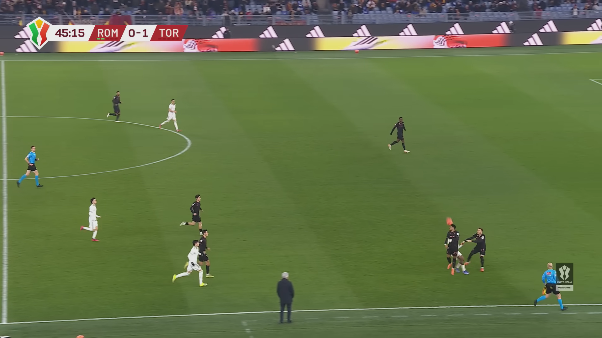 Pisilli imbuca così rapidamente la palla verso Bailey (immagine 3) e la Roma approfitta di una difesa granata messa male per colpire.