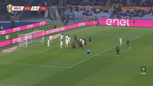 Anche in questo caso Svilar non è perfetto e non trattiene il pallone colpito di testa da Casadei nonostante non fosse molto potente. Il portiere della Roma lascia quindi il pallone nel pieno dell'area di porta e il primo ad approfittare al meglio di questa incertezza è Ilkhan. Il regista classe 2004 è velocissimo a lanciarsi su questo pallone prima che Svilar possa nuovamente acciuffarlo e lo spinge in porta da distanza ravvicinata, esplodendo di gioia. Questo primo gol stagionale del turco vale il passaggio del turno e una grande iniezione di fiducia per tutto il Torino.